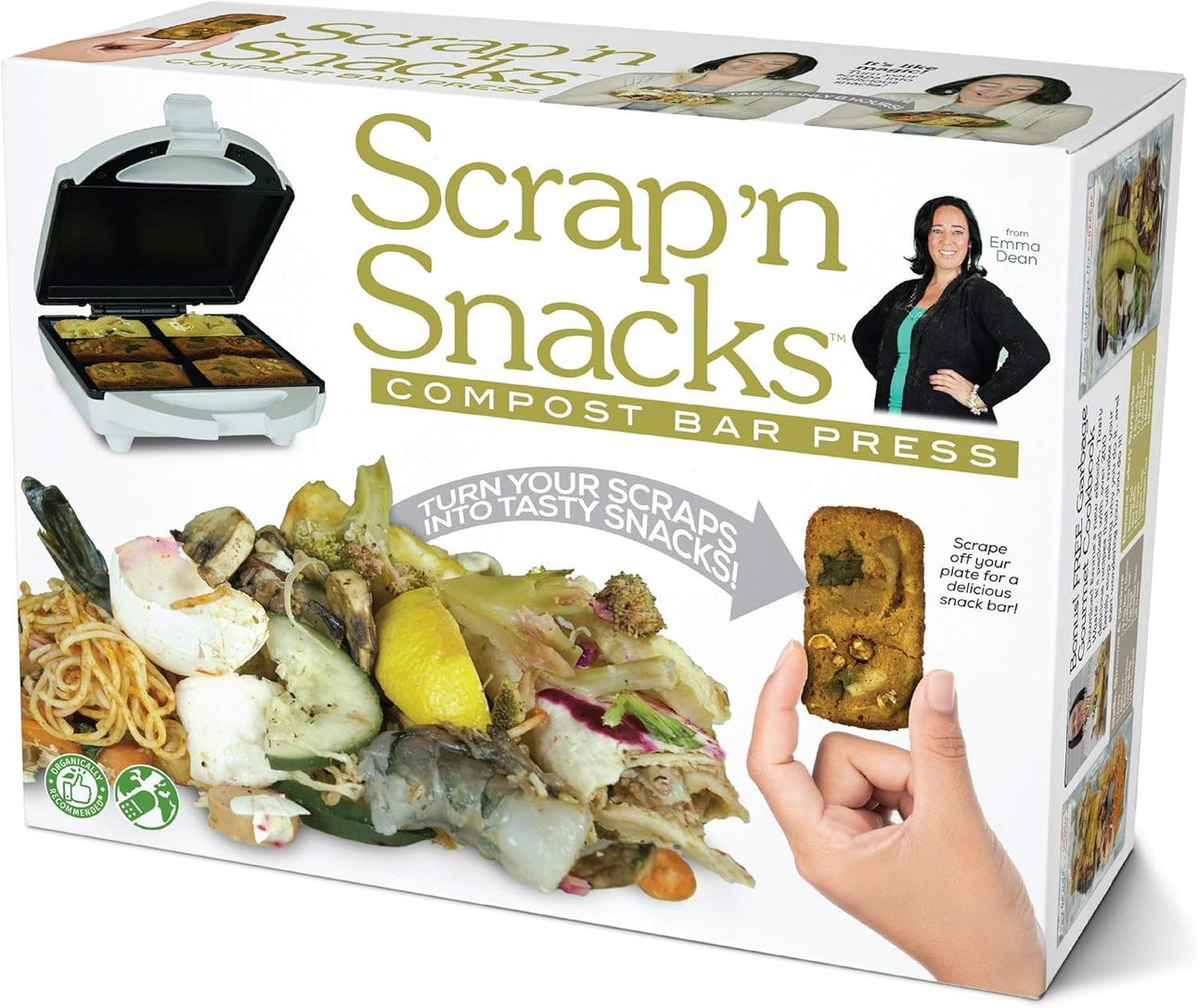 Introducing the scrap n’snack. It turns your food waste into delicious snack bars in any flavour you can imagine, like a lemon/cucumber/garlic/spaghetti bar. Delicious!