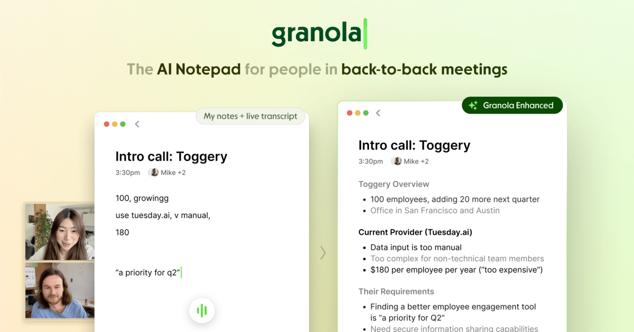 After a year of iterating in beta, Granola officially launched in May 2024 and quickly gained traction among professionals. It was soon named one of Time Magazine’s “best AI note-taking tools” of 2024 due to its unique human-in-the-loop design. Who knew that Time had a “best AI note-taking tools” list…