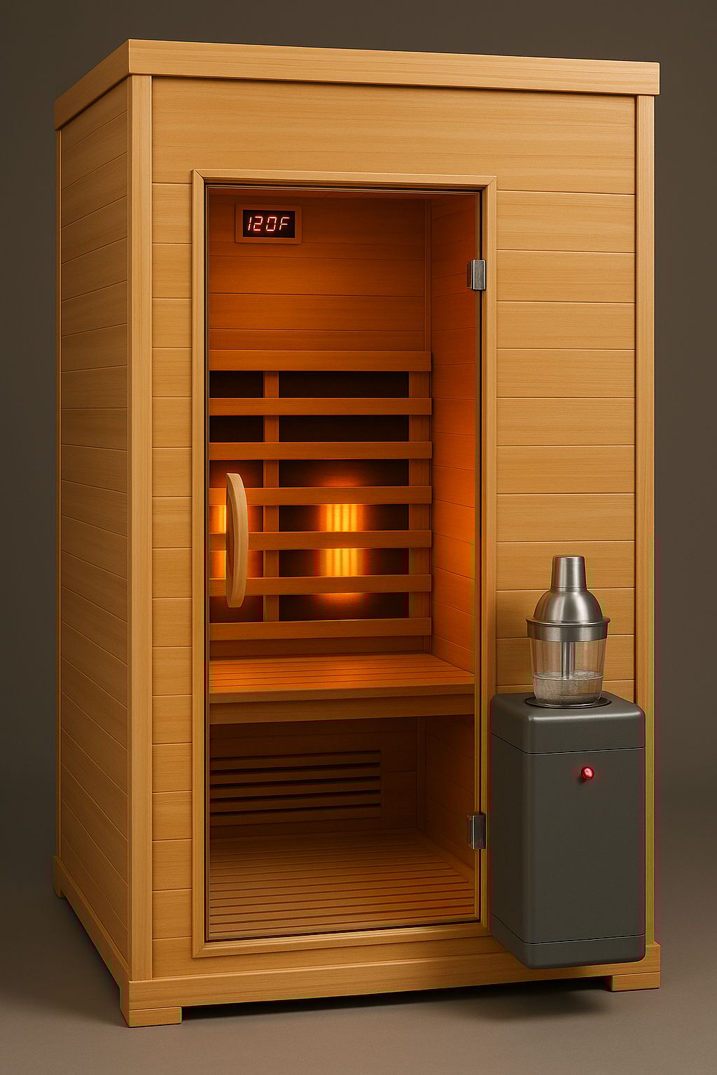 Introducing the Booze Booth™, the personal infrared sauna that vaporizes alcohol directly into the air so you can get lit while you sit.