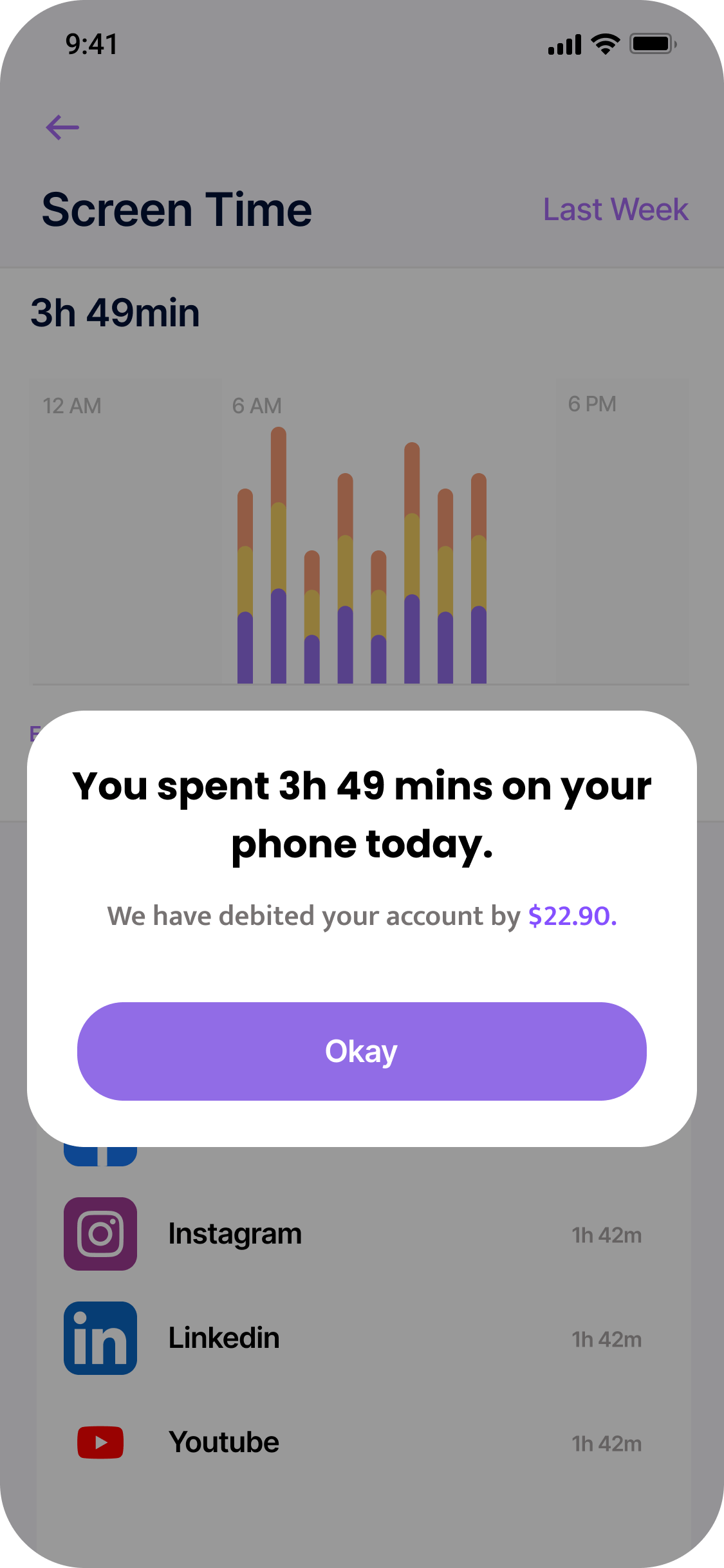 So why not help people manage their screen time by building an app which charges them 10c for every minute of screen time they have per day?
