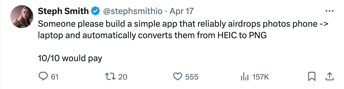 But we always say that Twitter is an incredible source of business ideas. And in particular Steph Smith’s twitter is an amazing source of inspiration.