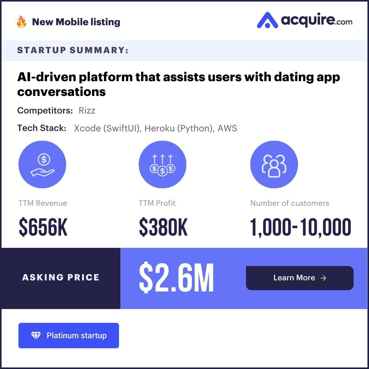 Acquire.com is a great place for business ideas. And a few months back there was a listing on the platform for an AI dating app that was for sale.