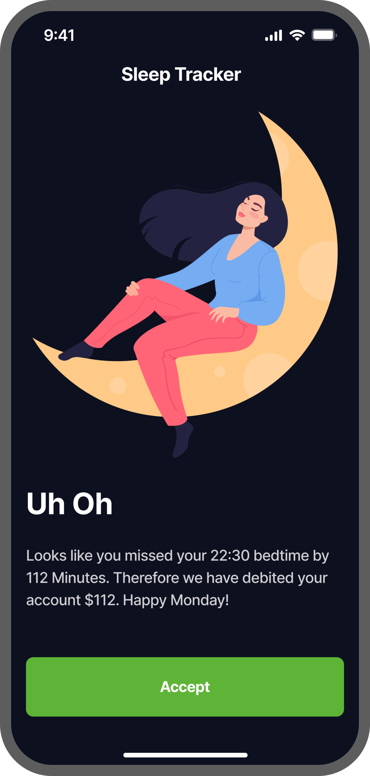 Well not anymore. With our new sleep tracking app you get billed for every minute later you go to bed than you should.