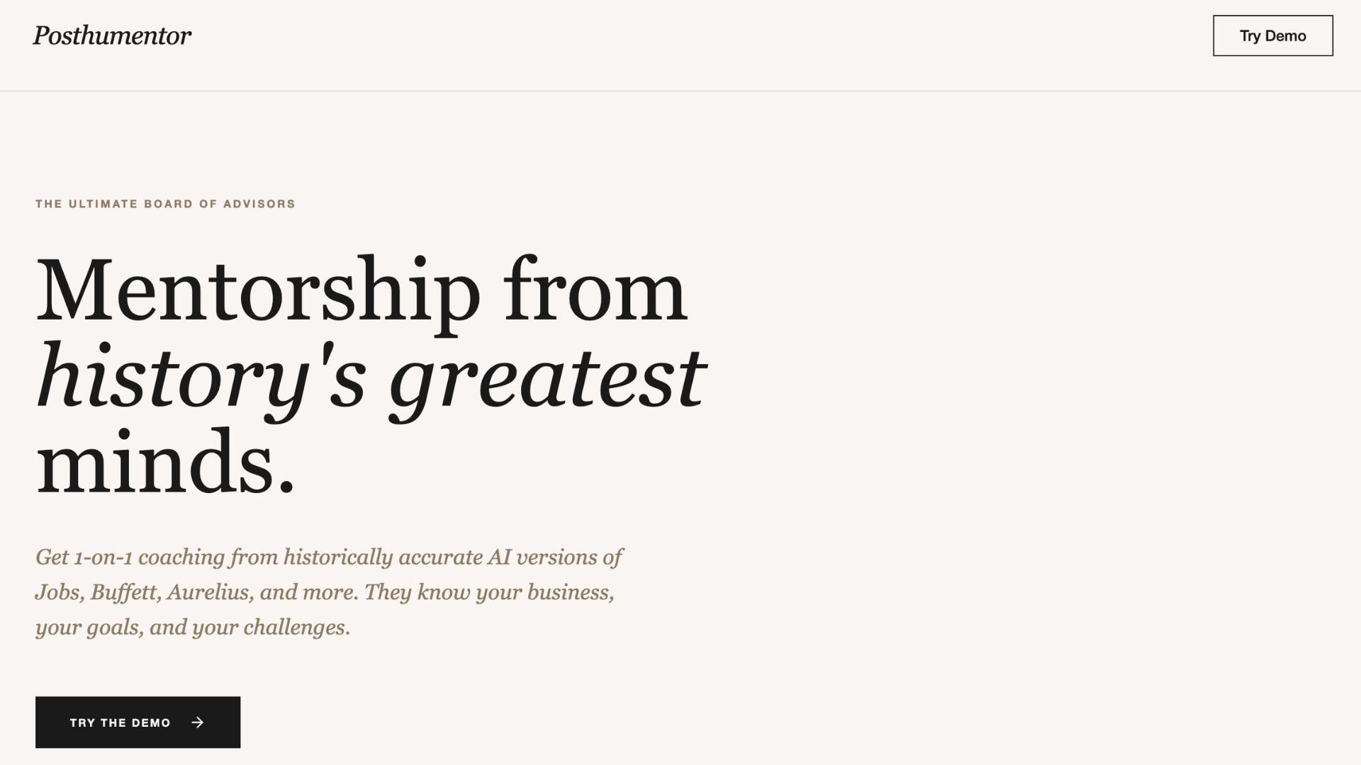 💡 The Idea: An AI mentorship platform where users get coached 1-on-1 by historically accurate AI versions of the world's greatest minds