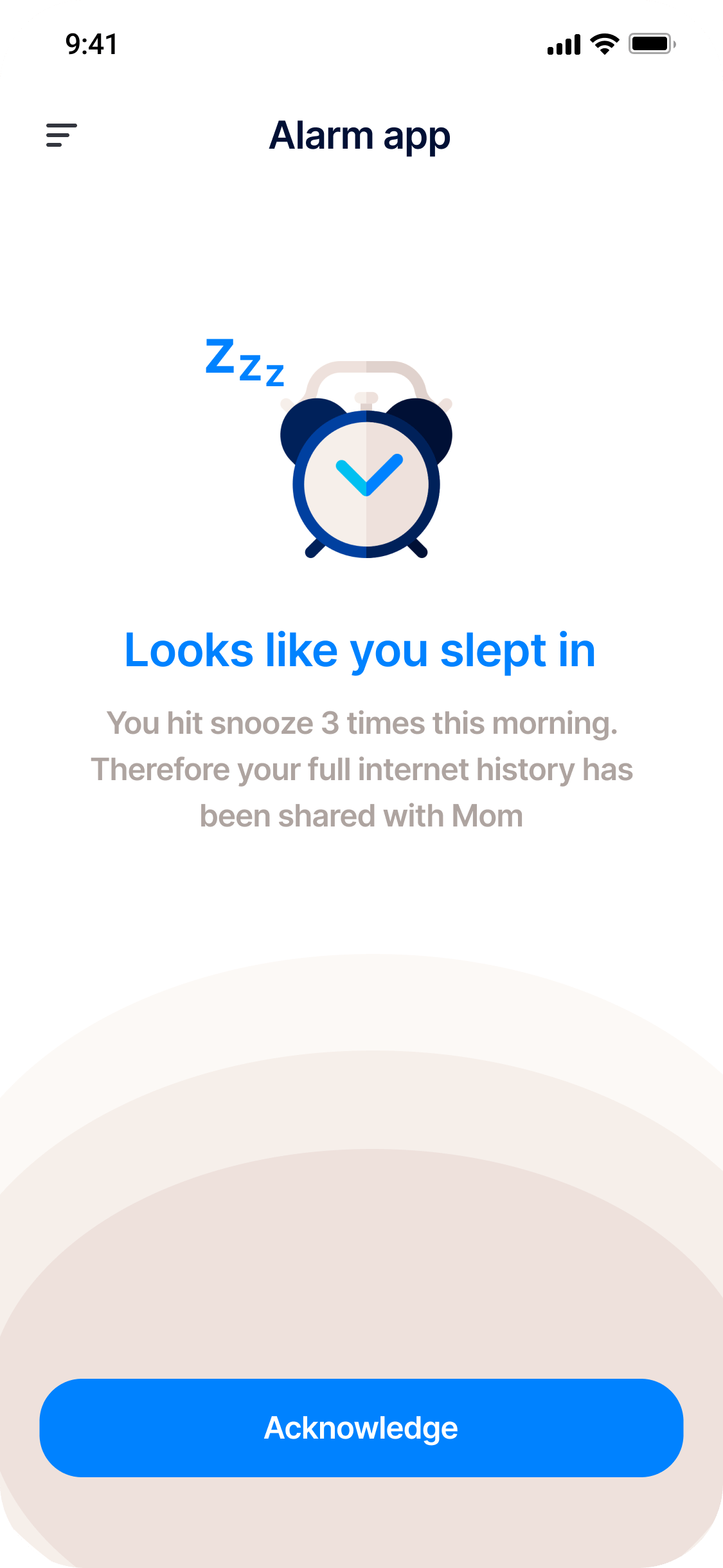 Introducing the app that punishes you for sleeping in. If you hit snooze too many times it sends your internet history to a random person in your contacts.