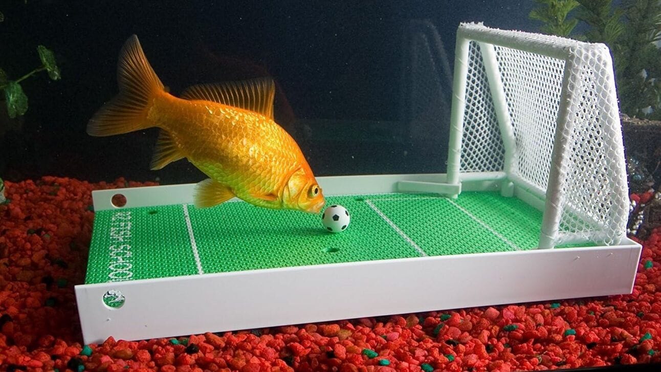 Introducing Fish Football™ - the world’s first underwater soccer kit for fish. Complete with a tiny goal, a little ball, and absolutely no understanding of the offside rule. It’s the best way to keep your goldfish in tip-top shape.