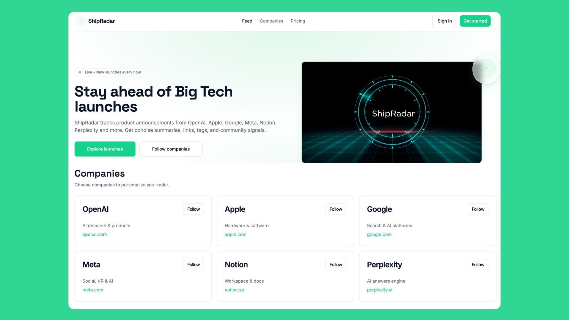 In a line: A platform that tracks and delivers product launch updates from big tech companies you choose to follow.