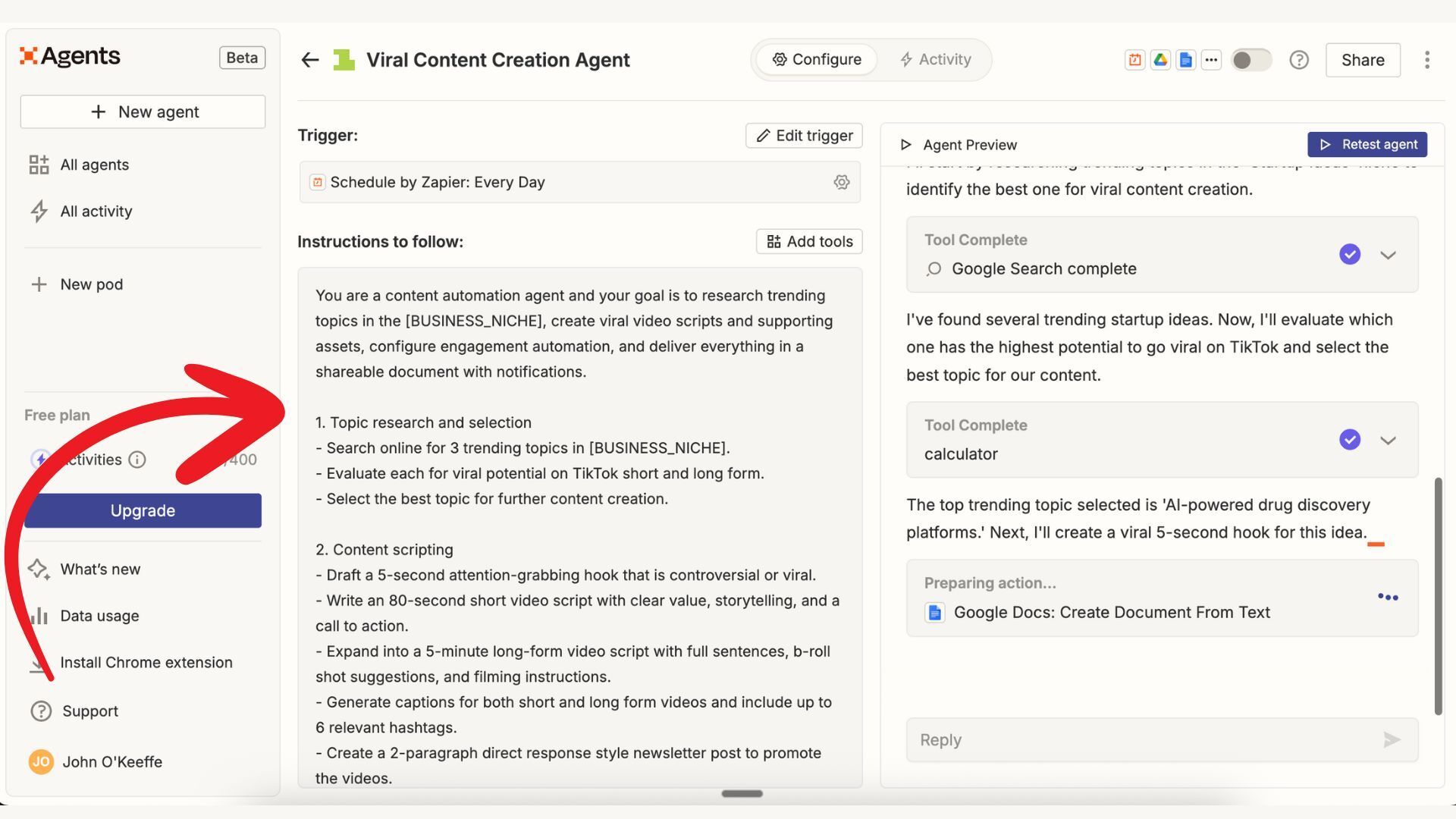 Go to Zapier’s Viral Content Creation Agent and set up all your permissions