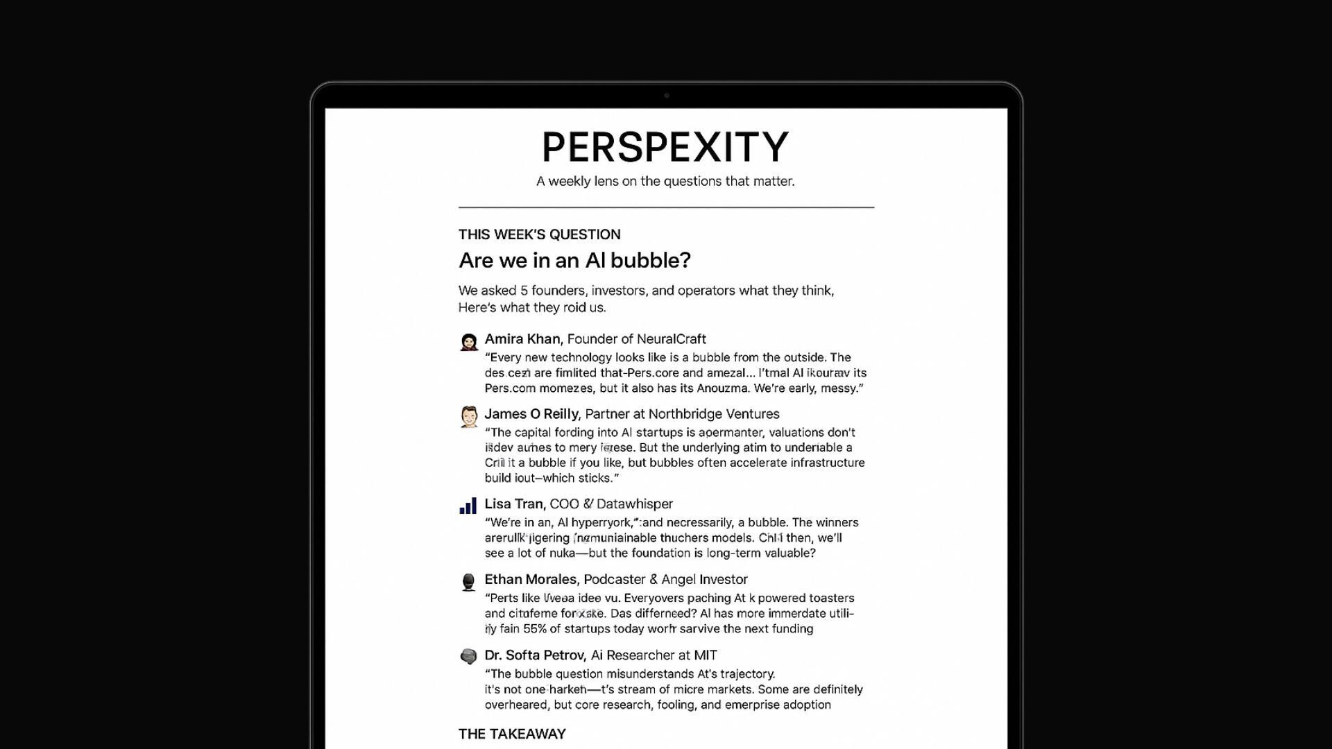 In a line: A weekly newsletter where you ask founders or business leaders for their take on an important question and share their takes with readers
