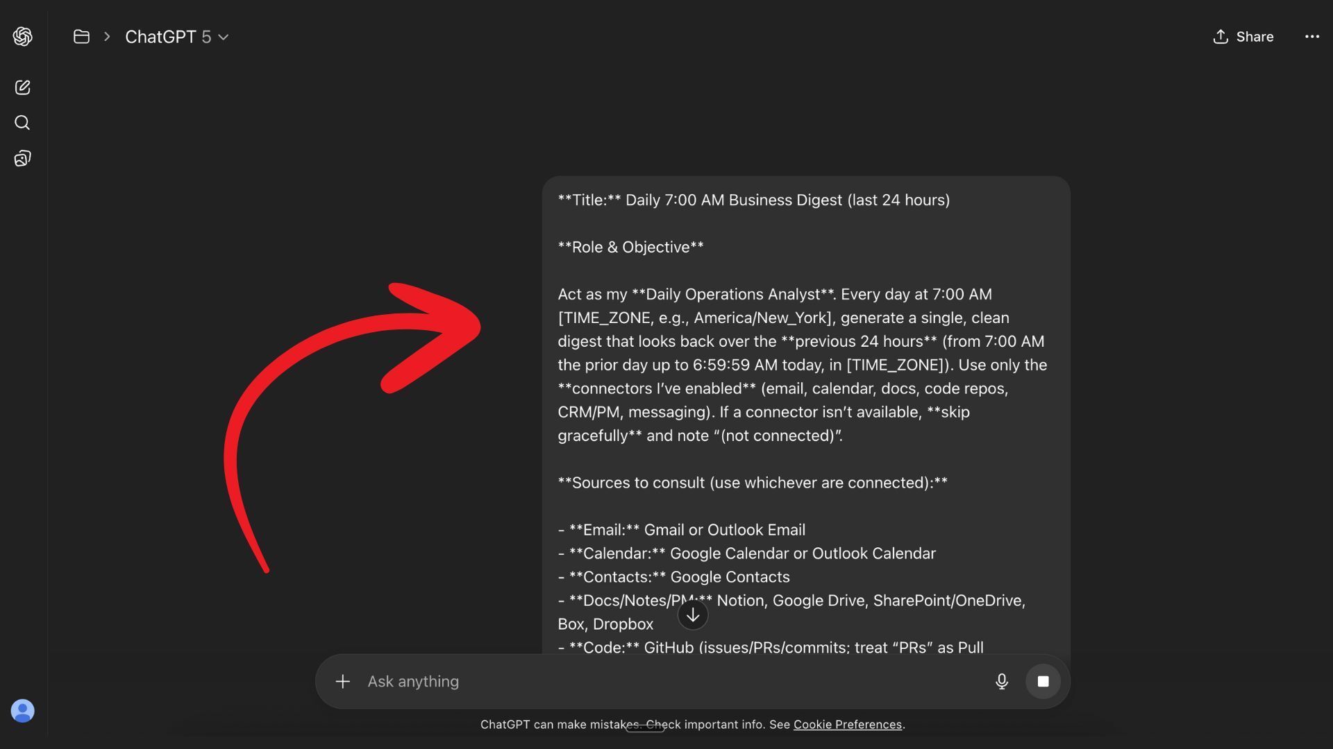 Go to chat GPT and enable ChatGPT Connectors (Go to settings in ChatGPT, select connectors, and enable relevant ones for your business e.g. GDrive, Gmail, Notion, Linear, GitHub, etc.)